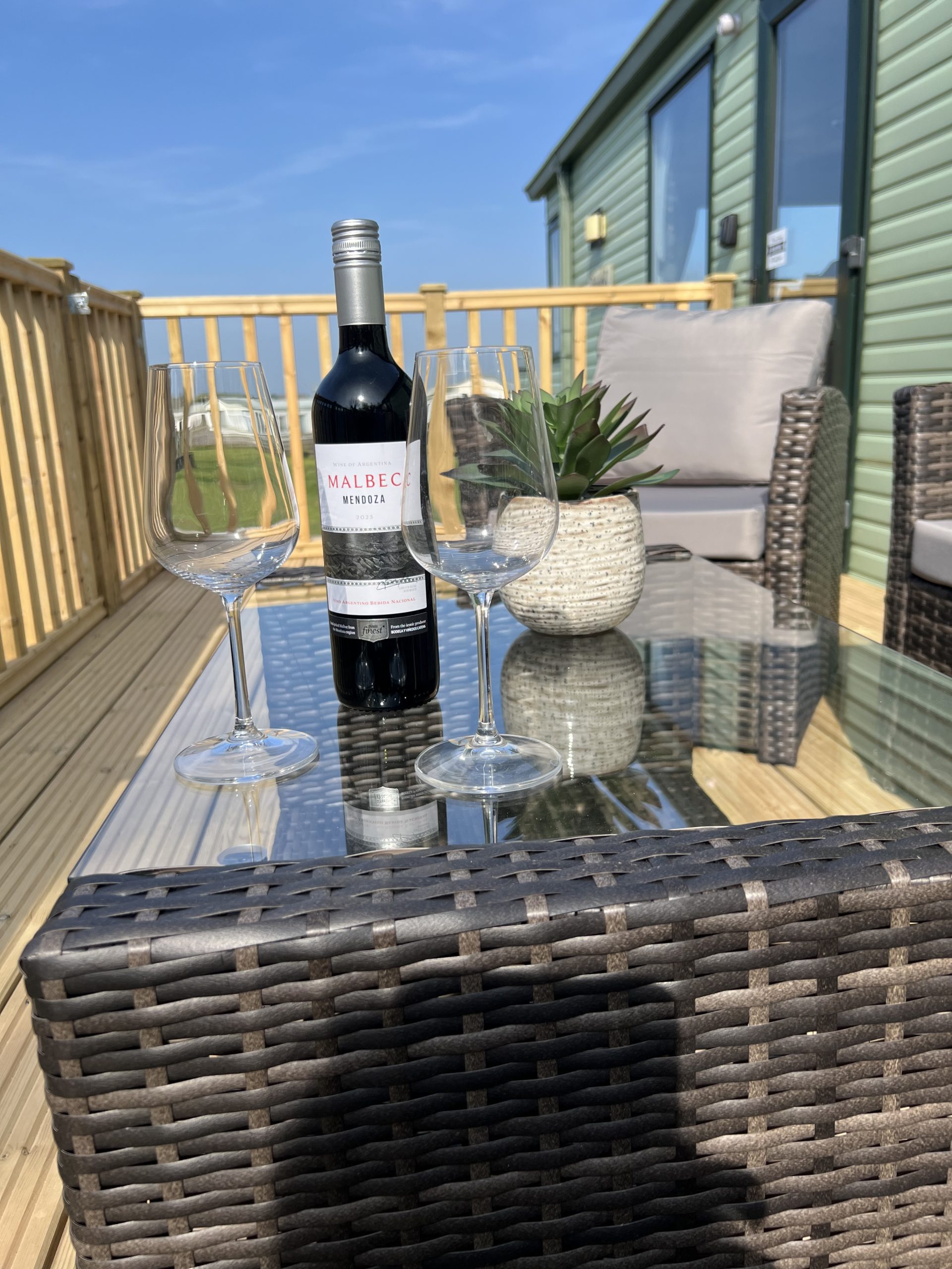 Outside you have a lovely decking with seating which catches the sun all day to enjoy your morning coffee or an evening sundowner ***