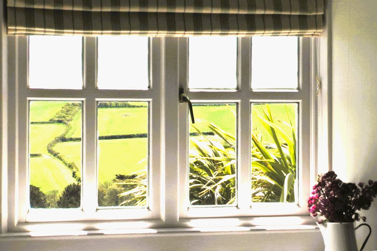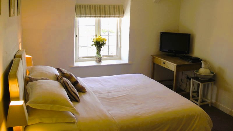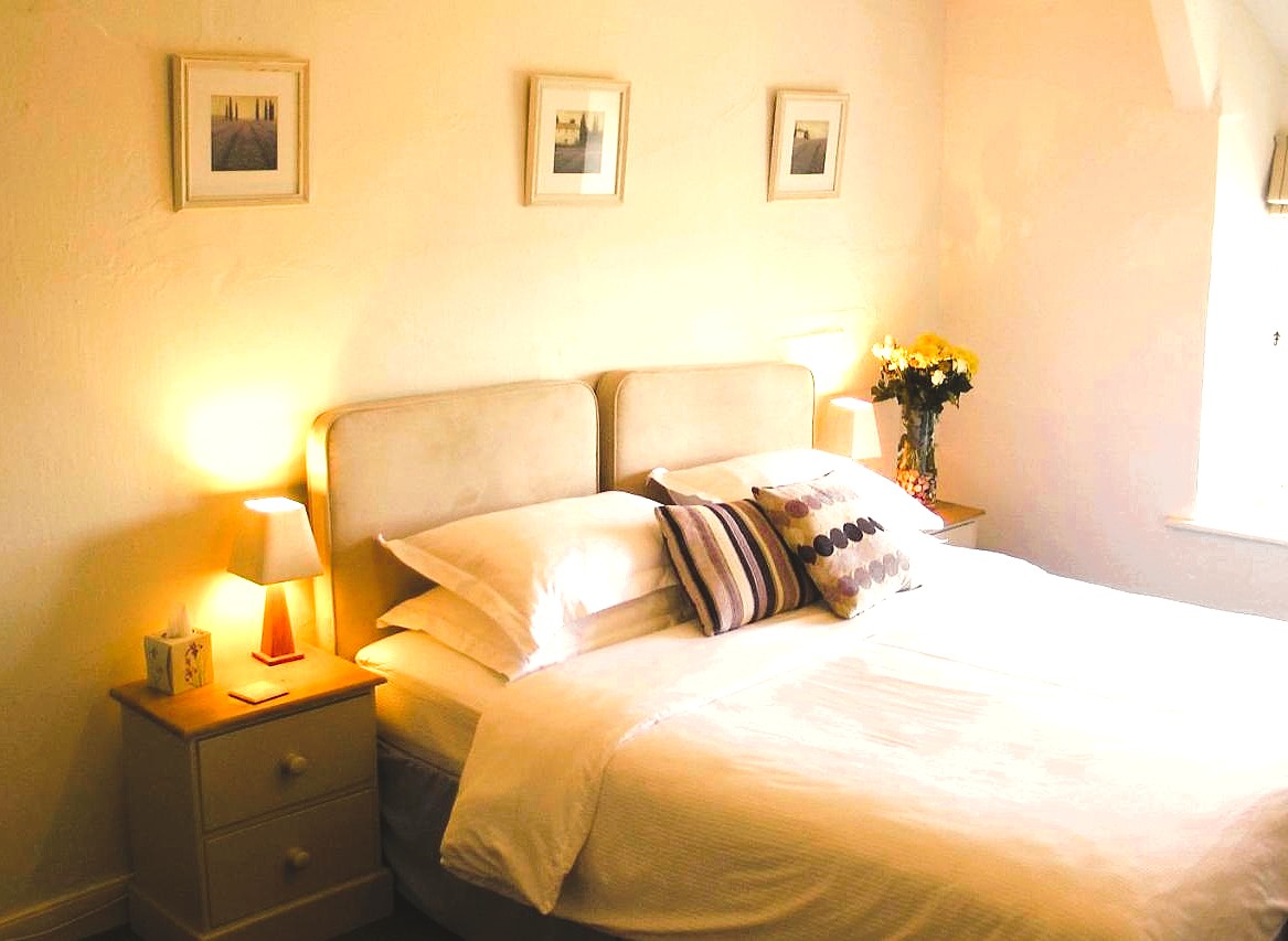 Our cosy room is available as a Super-king bed double with a view of the countryside, Camel estuary and beach. It has a ensuite bathroom with overhead shower. Suitable for two adults and one infant.