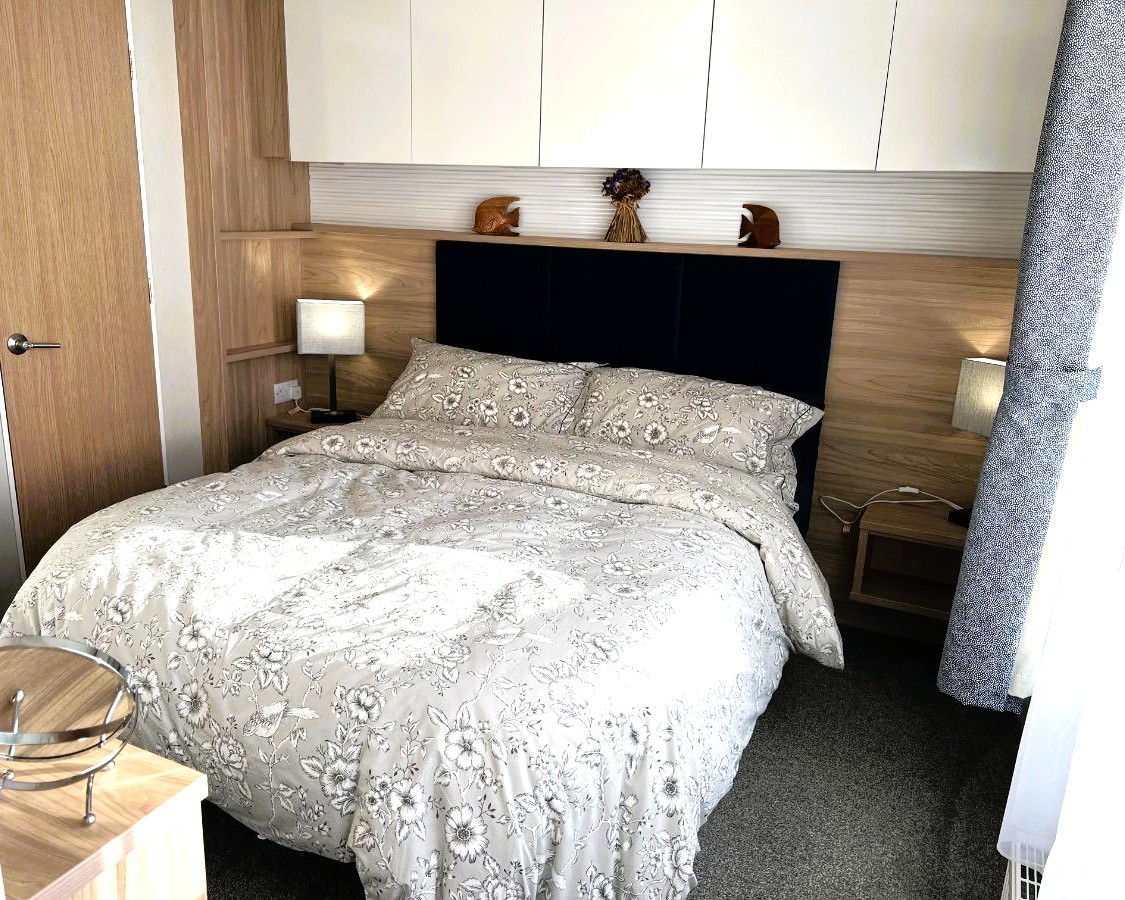 It has two bedrooms and (sleeps up to six people). The main bedroom having a king size bed with plenty of storage and an en-suite shower room. The second bedroom has 2 standard size single beds and a single wardrobe. There is a separate spacious family bathroom with a large walk-in shower.