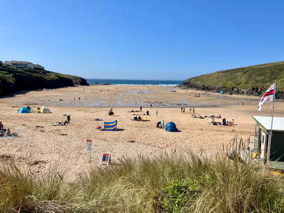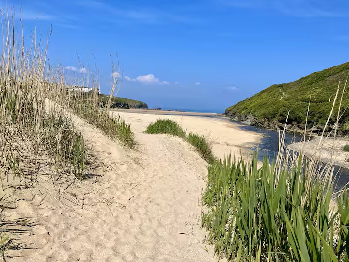 A choice awaits you as you enter the valley and cross the pretty bridge, the footpath takes you all the way to Penrose (right) a lovely walk or turn left leading you to the beach (10 mins) where you can step onto a beautiful sandy beach, sunbathe, swim & surf. Lifeguards are on duty during the main holiday season.