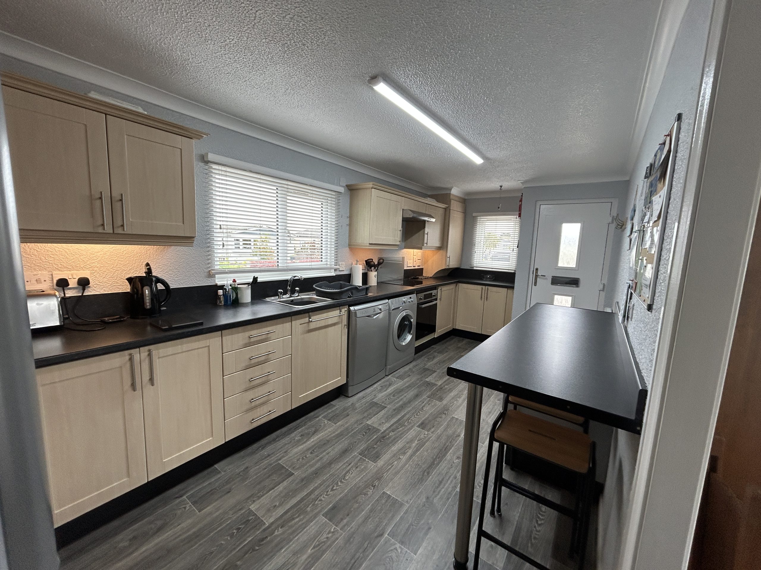 The Lodge offers a large kitchen with breakfast bar, large lounge/dining room with patio doors leading to the secure garden.