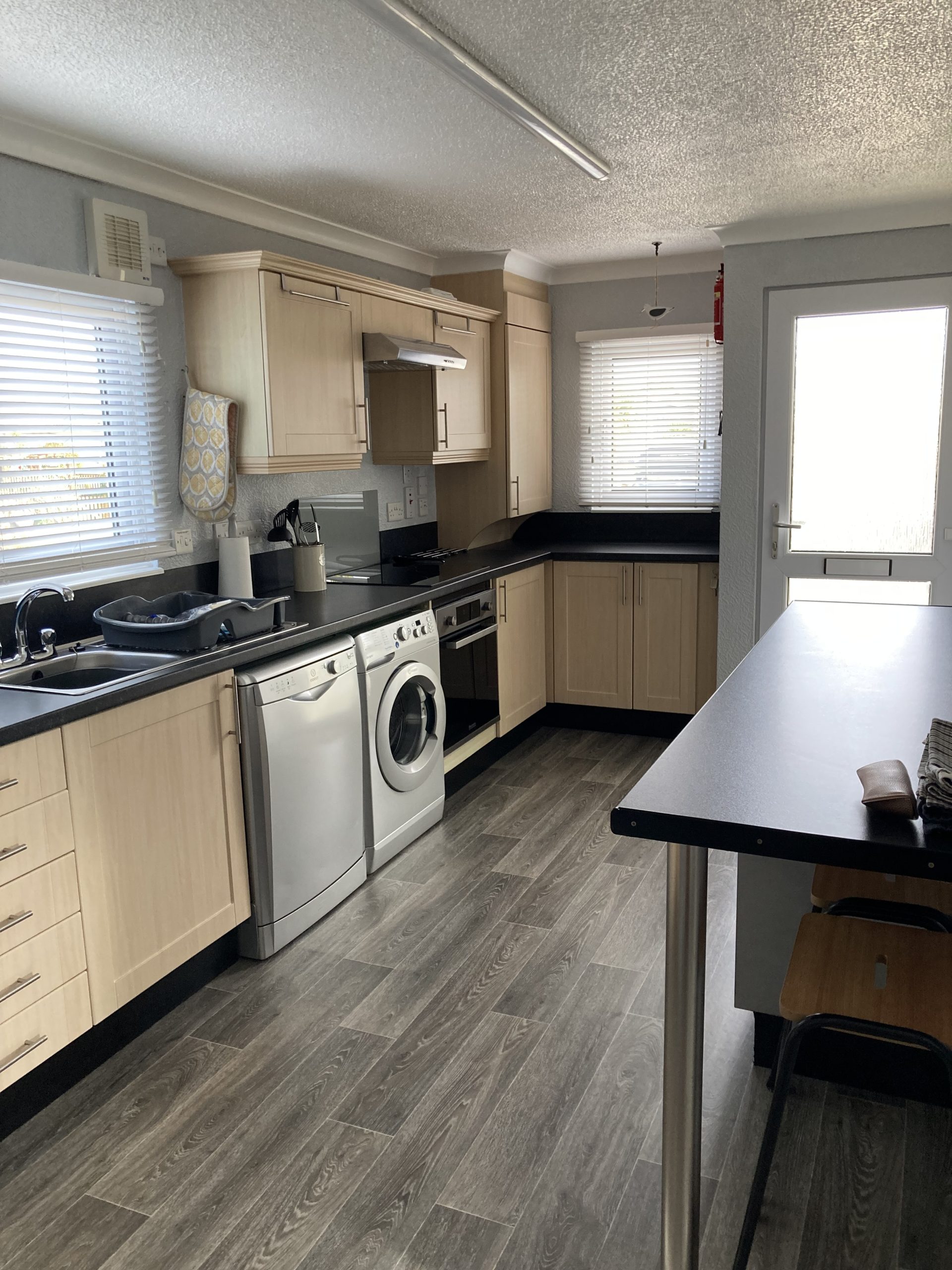 The Lodge offers a large kitchen with breakfast bar, large lounge/dining room with patio doors leading to the secure garden.