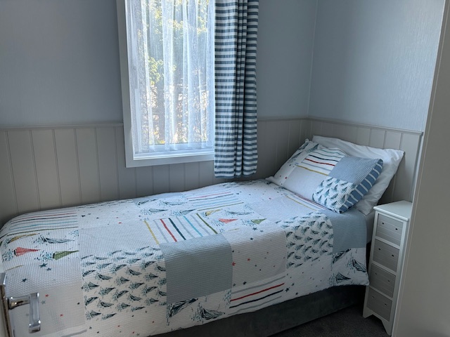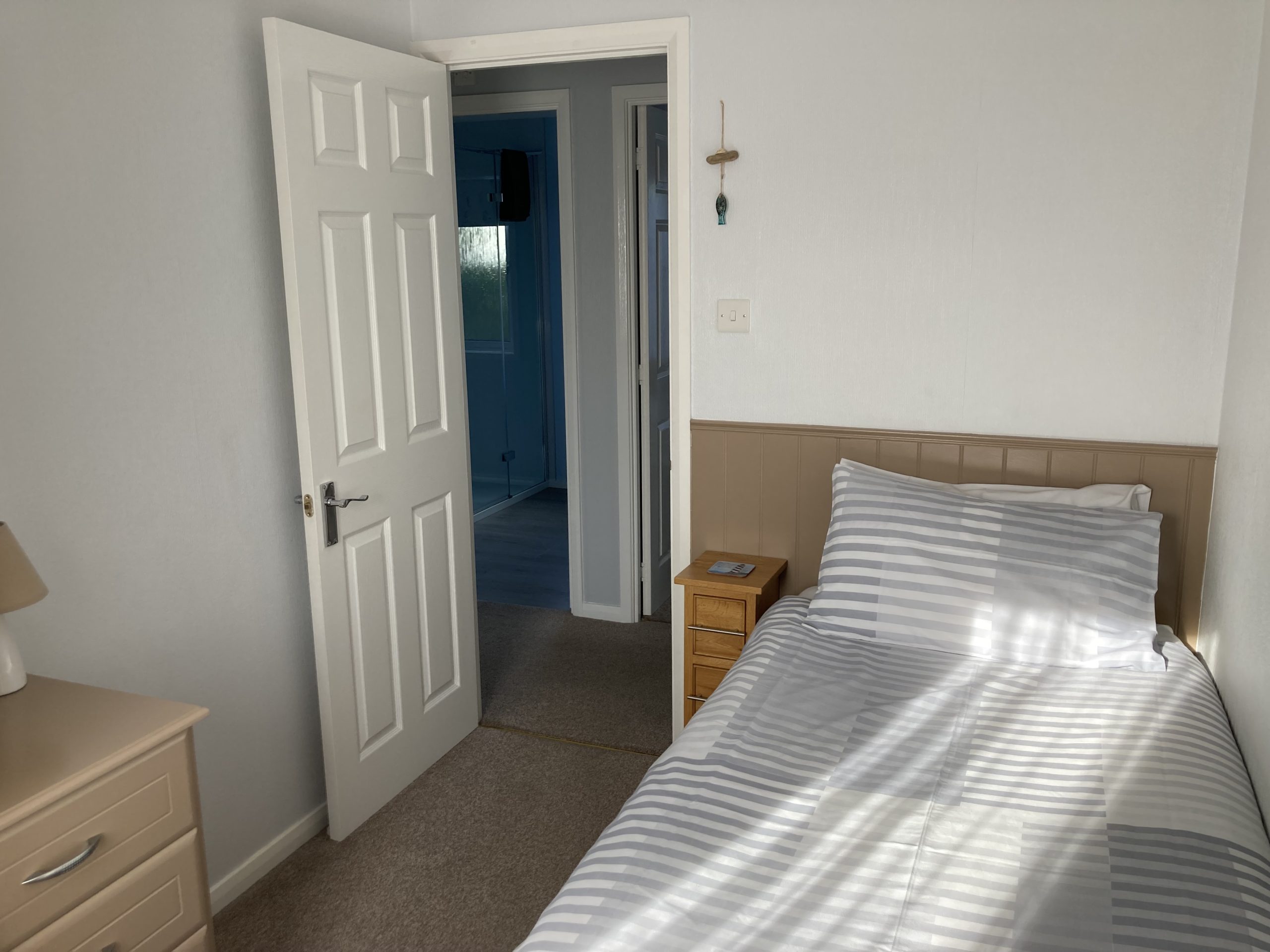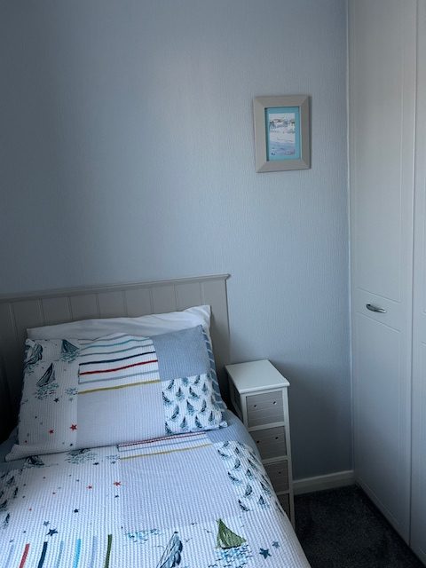 There are two double bedrooms (one with en-suite shower room), two single bedrooms (one 3′ single & one 2′ 6″) and good sized family shower room – with a large shower.